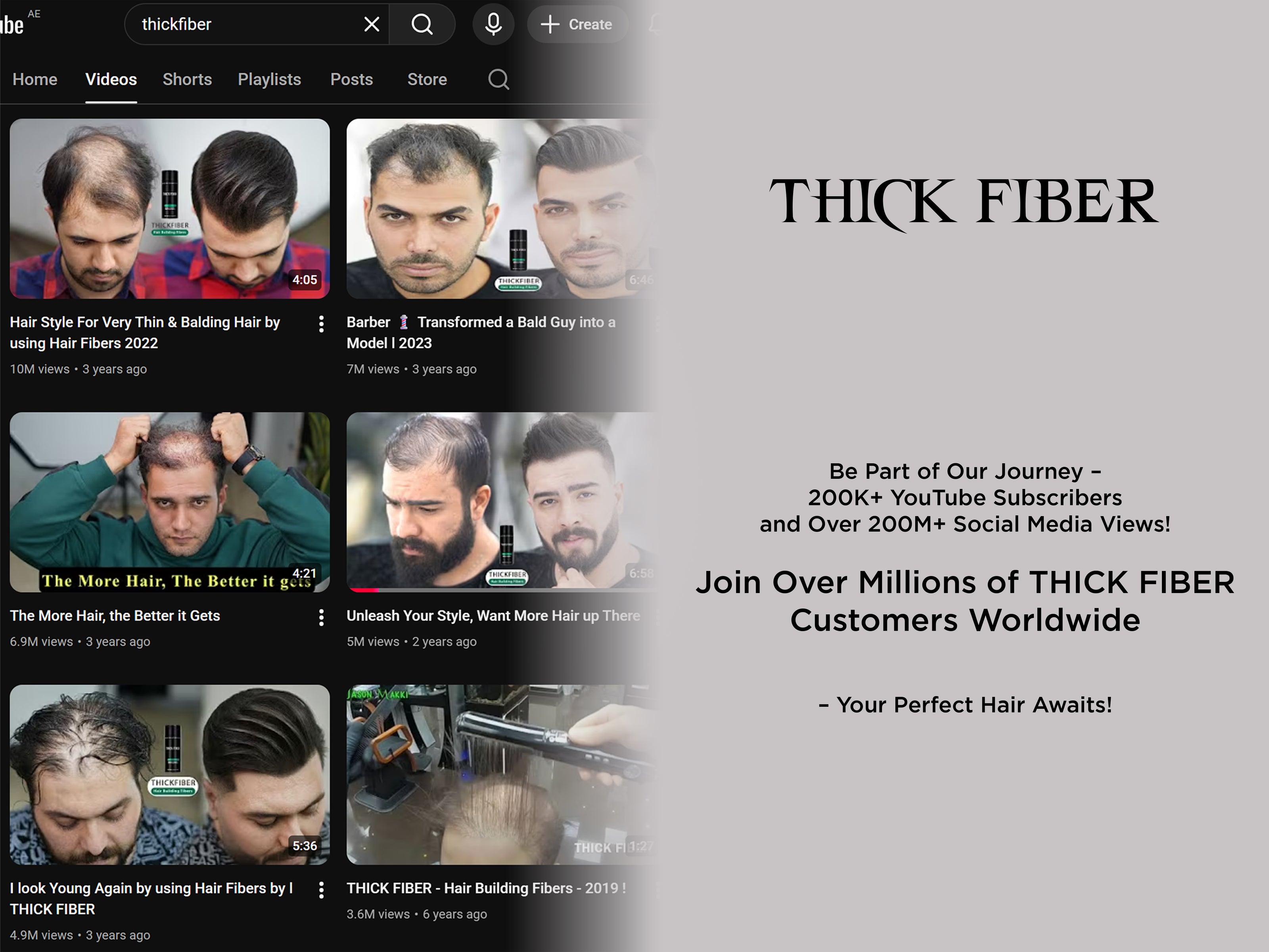 With over 200 million views on YouTube and Instagram, THICK FIBER is loved and trusted worldwide. Our product delivers real, visible results - used by both men and women across all hair types.